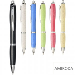 Búzaszalmából készült golyóstoll króm véggel, fekete tintával, 0,7 mm