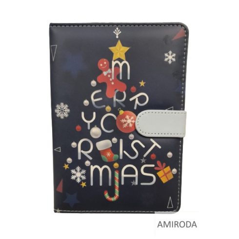 Karácsonyi mintás vonalas notesz, A5, szivacsos, mágneses záródással, több minta