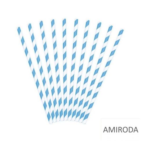 Papír szívószál , csíkos, 24db/csomag, vegyes színekben