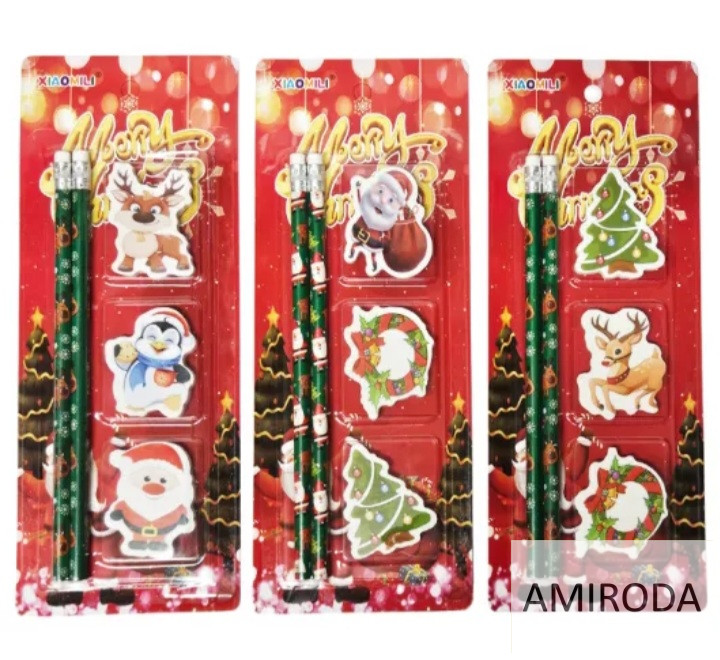 Karácsonyi szett, 2db grafitceruza +3db radír