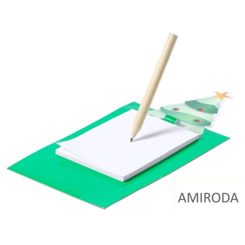 Hűtőmágnes karácsonyfa figurával a tetején, 40 lapos jegyzettömbbel és mini ceruzával
