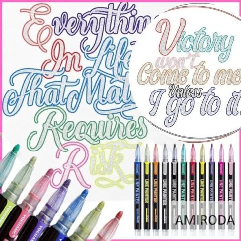Dupla vonalú, csillámos filctoll, ezüst metál.
