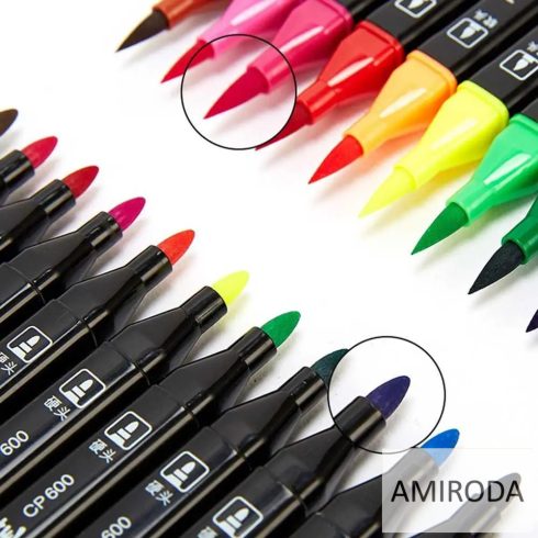 AIHAO kétvégű filctoll, tartóban, 12színű