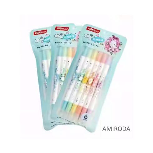 TENFON Szövegkiemelő készlet, kétvégű, vágott és tűhegyű, 6db-os