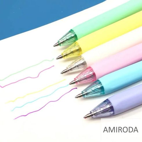 Nyomógombos zseléstoll készlet, 6db-os, 0,7mm, pasztell színek,