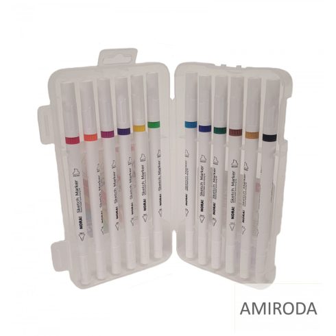NORA 12db-os filctoll készlet, kétvégű, normál és vágott hegyű, 12 szín, műanyag tartóban