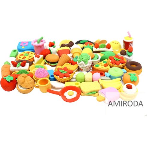 Figurás radír szett, visszazárható uzsonnás dobozkában, doboz mérete kb 7 x 7cm, különféle összeállításban