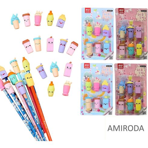 QIHAO radírkészlet, MILK TEA 6db,ceruzavégre húzható , 4cm-es figurák