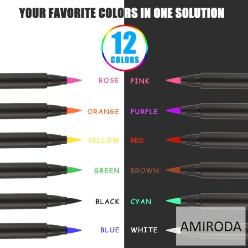 Akril marker készlet, 12db-os, ecsetvégű, 1-6mm,