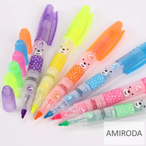TENFON 6 db-os, (6 színű), két végén fejelt szövegkiemelő készlet, gyümölcsös illattal, 1-3mm